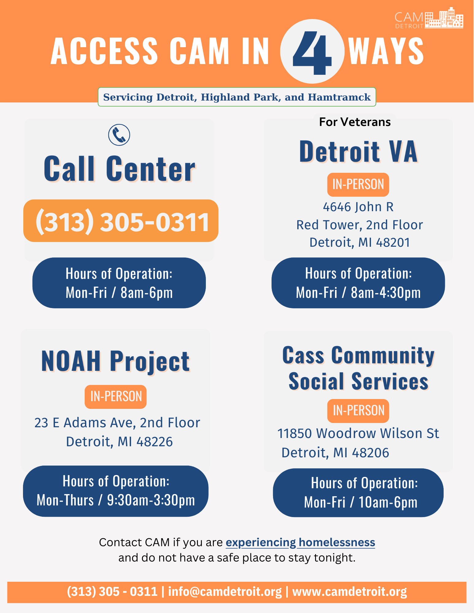 CAM processes are changing daily to adapt to the needs of the service area. Please check CAM’s website regularly for the most up-to-date information.